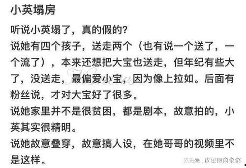 面对舆论的压力,小英在社交媒体上发表了声明。她承认自己在成名过程中确实存在一些问题,并表示会积极改正。她还表示,自己会通过法律途径维护自己的权益,让真相大白。